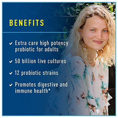 Ultimate Flora Critical Care, Extra-Strength Probiotic, 50 Billion Live Cultures Per Capsule (60 Capsules). Live Digestively 50 Billion Live Cultures Guaranteed 10 Probiotic Strains For Occasional Digestive Discomfort Promotes Digestive & Immune Health Probiotic Supplement Gluten Free Dairy Free Soy Free No Artificial Ingredients Manufactured in USA in a GMP Facility Digestive Wellness, Naturally At Renew Life, we believe a healthy gut is a happy gut. For nearly two decades, we have pioneered superior-quality digestive care supplements to help people achieve optimal health from the inside out. Extra Care Probiotic - For Occasional Digestive Comfort Our Ultimate Flora Extra Care Probiotics provide powerful digestive support to restore your body's good, natural flora. Ultimate Flora 50 Billion Extra Care Probiotic is a high-potency formula with 10 specially selected strains designed to re-establish digestive balance for those who experience occasional digestive discomfort. Good For Your Gut! Your gut is your engine, your digestive core. Keep it running smoothly with Ultimate Flora Probiotics. When taken regularly, Bifidobacteria and Lactobacilli help promote digestive and immune balance so you feel better, lighter, and more energized. Powerful & Effective Did you know there are 100 trillion bacteria inside your digestive tract? To keep that complex system thriving, our high-potency formulas work hard to provide more of the good-for-you bacteria that occur in a naturally healthy gut. Multi-Strain Benefits Having a good balance among all the diverse microbes in your gut is key to well-being. But stress, aging, diet, and other issues can upset this delicate equilibrium. Ultimate Flora Probiotics are made with multiple, scientifically studied strains to support digestive balance and harmony. Targeted Delivery Our once daily delayed-release capsules help ensure more friendly probiotics reach your intestinal tract.
